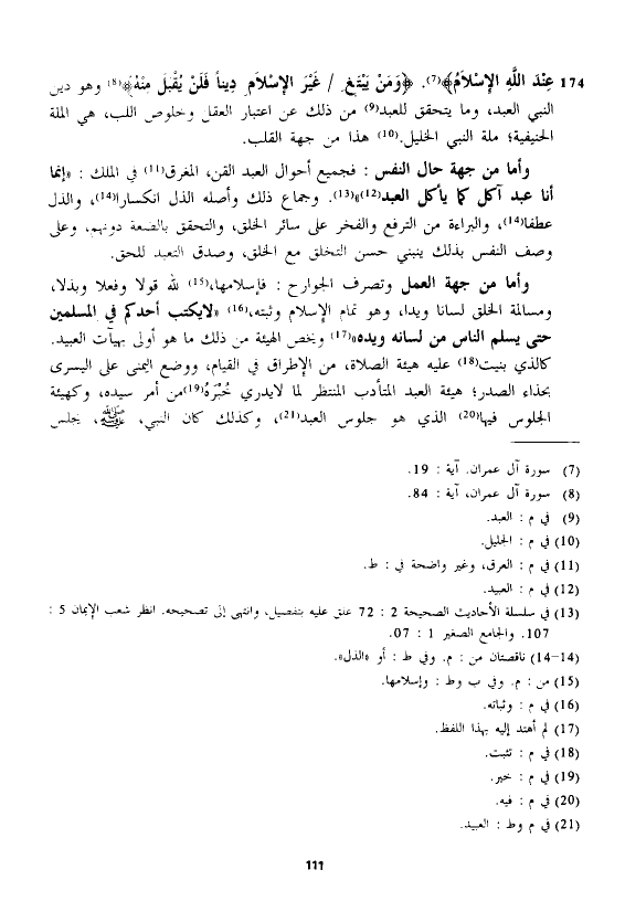 عِنْدَ اللَّهِ الْإِسْلَامُ}. {وَمَنْ يَبْتَغِ غَيْرَ الْإِسْلَامِ دِينًا فَلَنْ يُقْبَلَ مِنْهُ} وهو دين النبي العبد، وما يتحقق للعبد من ذلك عن اعتبار العقل وخصوص اللب، هي الملة الحنيفية؛ ملة النبي الخليل. هذا من جهة القلب.