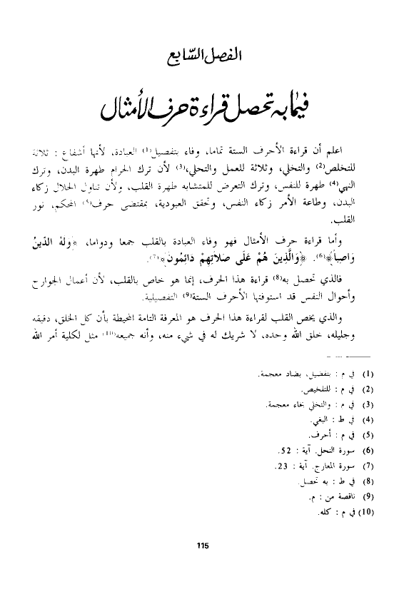 وأما قراءة حرف الأمثال فهو وفاء العبادة بالقلب جمعا ودواما، {وَلَهُ الدِّينُ وَاصِبًا}. {الَّذِينَ هُمْ عَلَى صَلَاتِهِمْ دَائِمُونَ}.