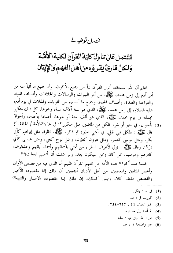 تشتمل على تناول كلية القرآن لكلية الأمة