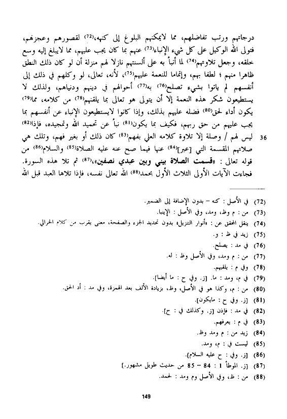 درجاتهم ورتب تفاضلهم، مما لا يمكنهم البلوغ إلى كنهه، لقصورهم وعجزهم، فتولى الله الوكيل على كل شيء الإنباء عنهم بما كان يجب عليهم، مما لا يبلغ إليه وسع خلقه، وجعل تلاوتهم لما أنبأ به على ألسنتهم نازلا لهم منزلة أن لو كان ذلك النطق ظاهراً منهم؛ لطفا بهم، وإتماما للنعمة عليهم، لأنه، تعالى، لو وكلهم في ذلك إلى أنفسهم لم يأتوا بشيء تصلح به أحوالهم في دينهم ودنياهم، ولذلك لا يستطيعون شكر هذه النعمة إلا أن يتولى هو تعالى بما يلقنهم من كلامه، مما يكون أداء لحق فضله عليهم بذلك، وإذا كانوا لا يستطيعون الإنباء عن أنفسهم بما يجب عليهم من حق ربهم، فكيف بما يكون نبأ عن تحميد الله وتمجيده، فإذا ليس لهم وصلة إلا تلاوة كلامه العلي بفهم كان ذلك أو بغير فهم، وتلك هي صلاتهم المقسمة التي [عبر] عنها فيما صح عنه عليه الصلاة والسلام من قوله تعالى: "قسمت الصلاة بيني وبين عبدي نصفين"، ثم تلا هذه السورة. فجاءت الآيات الأولى الثلاث الأول بحمد الله تعالى نفسه، فإذا تلاها العبد قبل الله