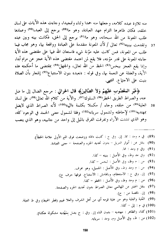 قال الْحَرَالِّي: مرجع الضال إلى ما ضل عنه، والصراط الطريق الخطر السلوك. والآية من كلام الله تعالى، على لسان العلية من خلقه، وجاء مكملا بكلمة "ال" لأنه الصراط الذي لا يضل بمهتديه لإحاطته ولشمول سريانه وفقا لشمول معنى الحمد في الوجود كله، وهو الذي تشتت الآراء وتفرقت الفرق بالميل إلى واحد من جانبيه، وهو الذي ينصب