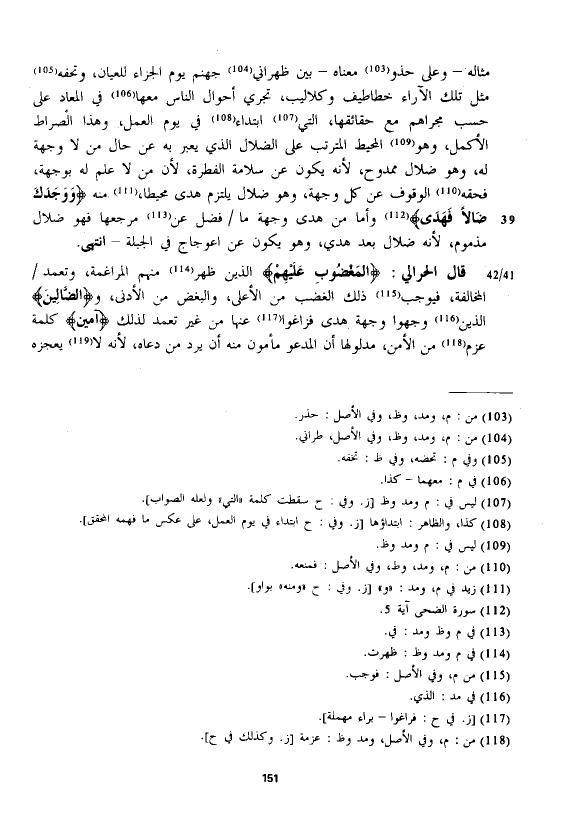 مثاله - وعلى حذو معناه - بين ظهراني جهنم يوم الجزاء للعيان، وتحفه مثل تلك الآراء خطاطيف وكلاليب، تجري أحوال الناس معها في المعاد على حسب مجراهم مع حقائقها، التي ابتداء في يوم العمل، وهذا الصراط الأكمل، وهو المحيط المترتب على الضلال الذي يعبر به عن حال من لا وجهة له، وهو ضلال ممدوح، لأنه يكون عن سلامة الفطرة، لأن من لا علم له بوجهة، فحقه الوقوف عن كل وجهة، وهو ضلال يلتزم هدى محيطا، منه {وَوَجَدَكَ ضَالًّا فَهَدَى} وأما من هدى وجهة ما فضل عن مرجعها فهو ضلال مذموم، لأنه ضلال بعد هدي، وهو يكون عن اعوجاج في الجبلة - انتهى.