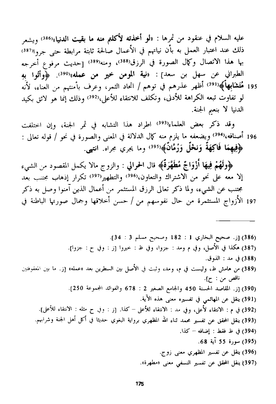 عليه السلام في عنقود من ثمرها: "لو أخذته لأكلتم منه ما بقيت الدنيا" ويشعر ذلك عند اعتبار العمل به بأن نياتهم في الأعمال صالحة ثابتة مرابطة حتى جروا بها هذا الاتصال وكمال الصورة في الرزق، ومنه [حديث مرفوع أخرجه الطبراني عن سهل بن سعد]: "نية المؤمن خير من عمله". {وَأُتُوا بِهِ مُتَشَابِهًا} أظهر عذرهم في توهم اتحاد الثمر، وعرف بأمنتهم من العناء، لأنه لو تفاوت تبعه الكراهة للأدنى، وتكلف للانتقاء للأعلى، وذلك إنما هو لائق بكيد الدنيا لا بنعيم الجنة.
