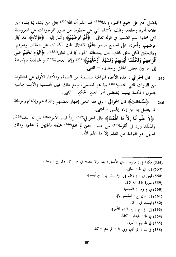 قال الْحَرَالِّي رداً لبدء الأمر لمن له البدء، ولذلك ورد في أثارة من علم: "من لم يختم 566 علمه بالجهل لم يعلم" وذلك الجهل هو البراءة من العلم إلا ما علم الله.