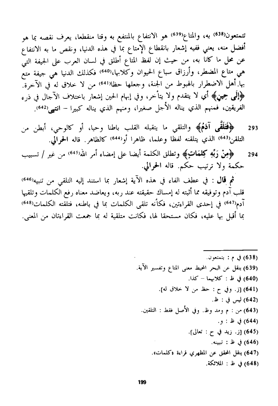ثم قال: في عطف الفاء في هذه الآية إشعار بما استند إليه التلقي من تنبيه قلب آدم وتوفيقه مما أثبته له إمساك حقيقته عند ربه، ويعاضد معناه رفع الكلمات وتلقيها آدم في إحدى القراءتين، فكأنه تلقى الكلمات بما في باطنه، فتلقته الكلمات بما أقبل بها عليه، فكان مستحقا لها، فكانت متلقية له بما جمعت القراءتان من المعنى.