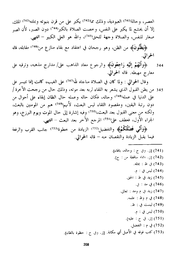 وقال الْحَرَالِّي: ولما كان في الصلاة مناجاة لله على الغيب، كانت إنما تتيسر على من يظن القبول الذي يشعر به اللقاء لربه بعد موته، وذلك حال من رجحت الآخرة على الدنيا في عمله وحاله، فكان حاله وعمله حال الظان إبقاء على أحوال من دون رتبة اليقين، ومقصود اللقاء ليس البعث، لأنهم هم من المؤمنين بالبعث، ولكنه من معنى القبول بعد البعث، وفيه إشارة إلى حال الموت ويوم البرزخ، وهو الجزاء الأول، فعطف على المرجع الآخر بعد البعث - انتهى.