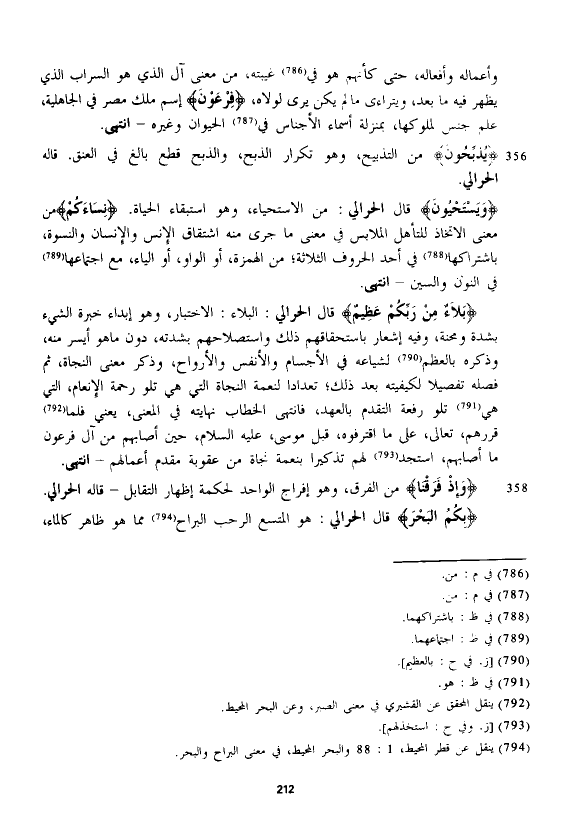 قال الْحَرَالِّي: من الاستحياء، وهو استبقاء الحياة. {نِسَاءَكُمْ} من معنى الاتخاذ للتأهل الملابس في معنى ما جرى منه اشتقاق الإنس والإنسان والنسوة، باشتراكها في أحد الحروف الثلاثة؛ من الهمزة، أو الواو، أو الياء، مع اجتماعها في النون والسين - انتهى.