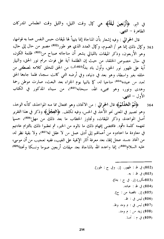 قال الْحَرَالِّي: وفيه إشعار بأن المناجاة إنما يتهيأ لها لميقات حبس النفس عما به قوامها، وكمال ذلك إنما هو الصوم، وكمال العدد الذي هو طور مصير من حال إلى حال، وهو الأربعون، وذكر الميقات بالليالي يشعر أن مناجاته صباح من ظلمة الكون، في حال خصوص الخلقة، من حيث إن الظلمة آية على فوت مرام نور الحق، والنهار آية على ظهور نور الحق، وأول باد بدأ من الحق للخلق كلامه لمصطفى من خلقه بغير واسطة، وهو بعد في دنياه، وفي أرضه التي كانت سجنا، فلما جاءها الحق لعبد من عبيده مناجيا له، كما ياتيها يوم الجزاء بعد البعث، صارت موطن رحمة وهدى ونرر، وهو مجيئ الله، سبحانه، من سيناء المذكور في الكتاب الأول - انتهى.