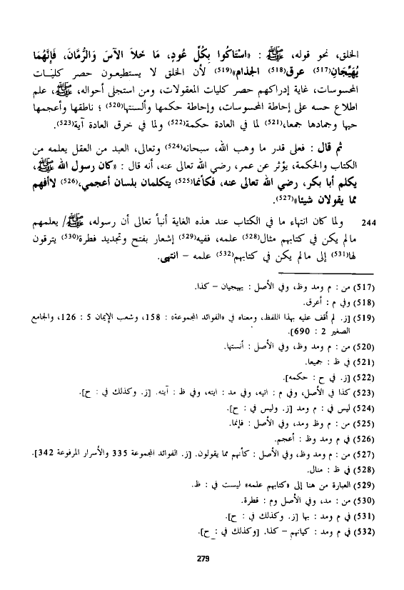 ثم قال: فعلى قدر ما وهب الله، سبحانه وتعالى، العبد من العقل يعلمه من الكتاب والحكمة، يؤثر عن عمر، رضي الله تعالى عنه، أنه قال: "كان رسول الله، يكلم أبا بكر، رضي الله تعالى عنه، فكأنما يتكلمان بلسان أعجمي، لا أفهم مما يقولان شيئا".