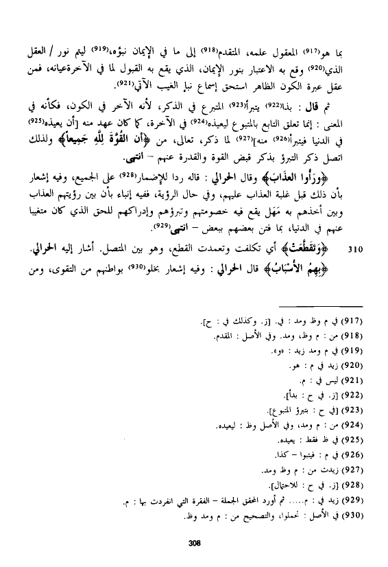 وقال الْحَرَالِّي: قاله ردا للإضمار على الجميع، وفيه إشعار بأن ذلك قبل غلبة العذاب عليهم، وفي حال الرؤية، ففيه إنباء بأن بين رؤيتهم العذاب وبين أخذهم به مهل يقع في خصومتهم وتبرؤهم وإدراكهم للحق الذي كان متغيبا عنهم في الدنيا، بما فتن بعضهم ببعض - انتهى.