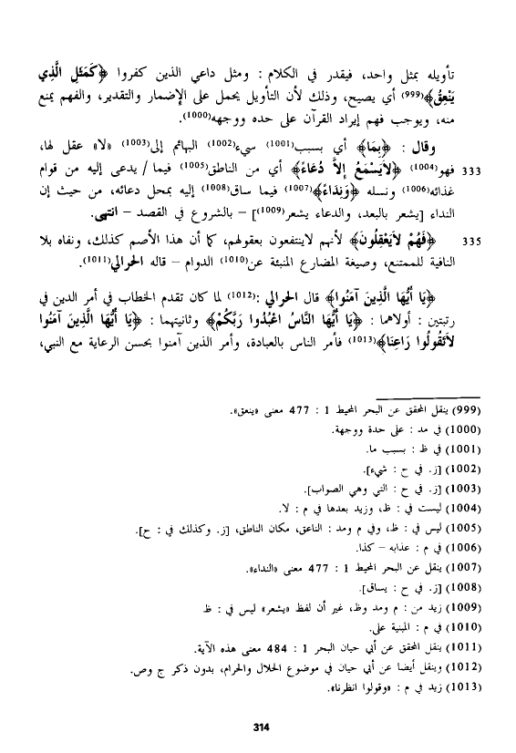 تأويله بمثل واحد، فيقدر في الكلام: ومثل داعي الذين كفروا {كَمَثَلِ الَّذِي يَنْعِقُ} أي يصيح، وذلك لأن التأويل يحمل على الإضمار والتقدير، والفهم يمنع منه، ويوجب فهم إيراد القرآن على حده ووجهه.