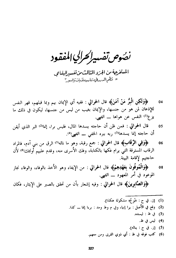 المستخرجة من الجزء الثالث من تفسير البقاعي