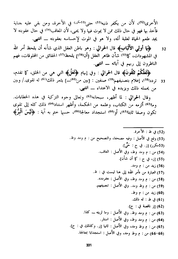 قال الْحَرَالِّي: وهو باطن العقل الذي شأنه أن يلحظ أمر الله في المشهودات، كما شأن ظاهر العقل [أن] يلحظ الحقائق من المخلوقات، فهم الناظرون إلى ربهم في آياته - انتهى.