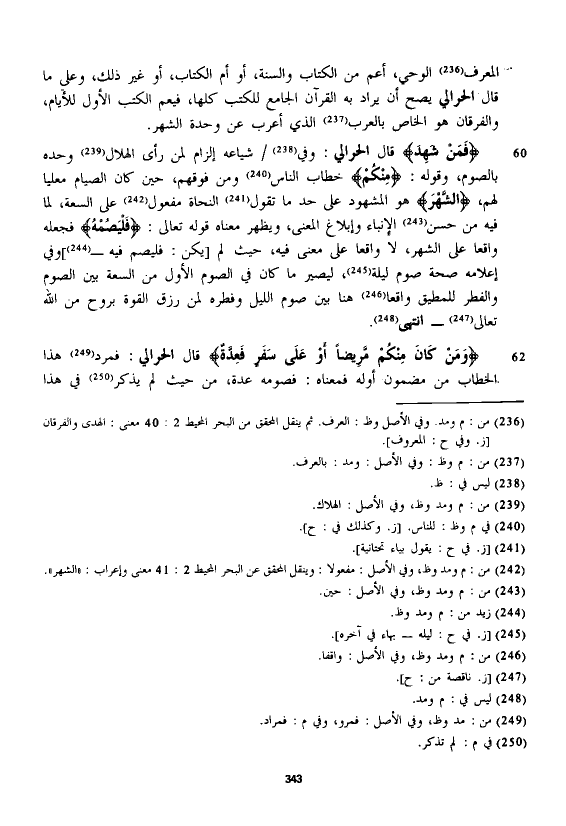 قال الْحَرَالِّي يصح أن يراد به القرآن الجامع للكتب كلها، فيعم الكتب الأول للأيام، والفرقان هو الخاص بالعرب الذي أعرب عن وحدة الشهر.
