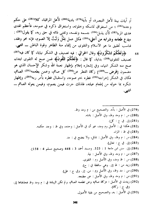 أو آيات بينة لأهل التبصرة، أو بآية بادية لأهل المراقبة، كلا على حكم وجده؛ من استغراق تماسكه وخلوته، واستغراق ذكره في صومه، فأعظم الهدى هدى المرء لأن يذبل جسمه ونفسه، وتفنى ذاته في حق ربه، كما يقول: "يدع طعامه وشرابه من أجلي" فكل عمل فعل وثبت إلا الصوم، فإنه محو وفقد، فناسب تحقيق ما هو الإسلام والتقوى من إلقاء منة الظاهر وقوة الباطن - انتهى.