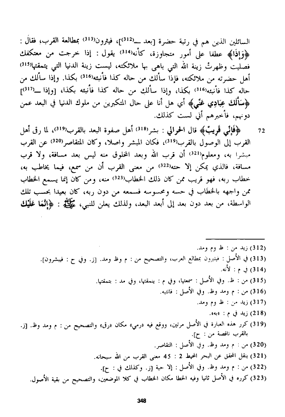 قال الْحَرَالِّي: بشر أهل صفوة البعد بالقرب، لما رقى أهل القرب إلى الوصول بالقرب، فكان المبشر وأصلا، وكان المتقاصر عن القرب مبشرا به، ومعلوم أن قرب الله وبعد المخلوق منه ليس بعد مسافة، ولا قرب مسافة، فالذي يمكن إلا حته من معنى القرب أن من سمع، فيما يخاطب به، خطاب ربه، فهو قريب ممن كان ذلك الخطاب منه، ومن كان إنما يسمع الخطاب ممن واجهه بالخطاب في حسه ومحسوسه فسمعه من دون ربه، كان بعيداً بحسب تلك الواسطة، من بعد دون بعد إلى أبعد البعد، ولذلك يعلن للنبي، - صلى الله عليه وسلم -: {فَإِنَّمَا عَلَيْكَ