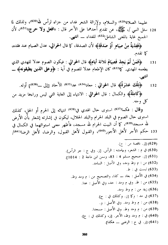 وقال: فكما استوى حال الهدي في بنائه إلى الحرم أو الحل، كذلك استوى حال الصوم في البلد الحرام والبلد الحلال، ليكون في إشارته إشعار بأن الأرض لله مسجد، كما أن البلد الحرام لله مسجد، فأظهر معنى استوائهما في الكمال في حكم الأجر لأهل الأجور، والقبول لأهل القبول، والرضا، لأهل الرضا