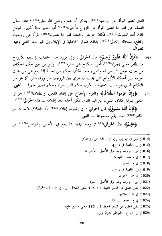قال الْحَرَالِّي: وفي مورد هذا الخطاب بإسناده للأزواج ما يظافر معنى إجراء أمور النكاح على سترة، وإعراض عن حكم الحكام، من حيث جعل التربص له والفيء منه، فكأن الحكم من الحاكم إنما يقع على من هتك حرمة ستر أحكام الأروأج التي يجب أن تجري بين الزوجين من وراء ستر، كما هو سر النكاح الذي هو سبب جمعهما، ليكون حكم السر سرا، وحكم الجهر جهراً - انتهى.