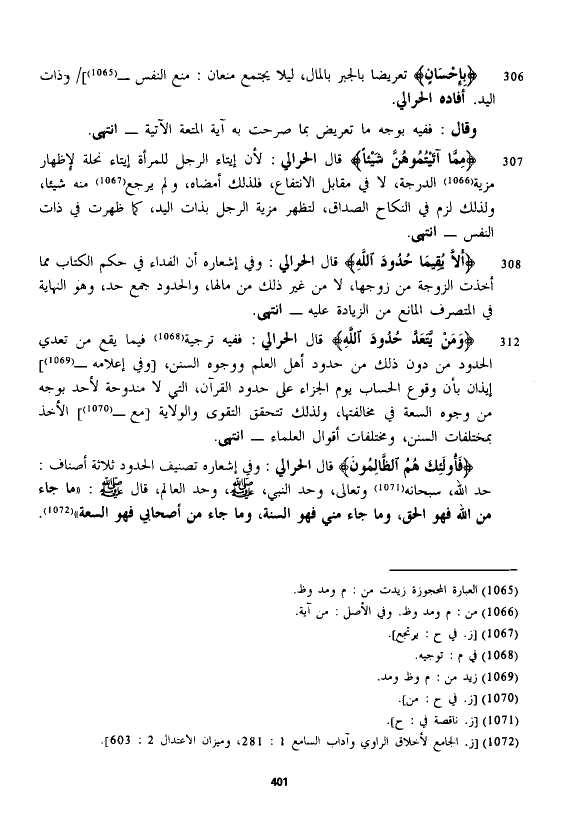 قال الْحَرَالِّي: وفي إشعاره أن الفداء في حكم الكتاب مما أخذت الزوجة من زوجها، لا من غير ذلك من مالها، والحدود جمع حد، وهو النهاية في المتصرف المانع من الزيادة عليه - انتهى.
