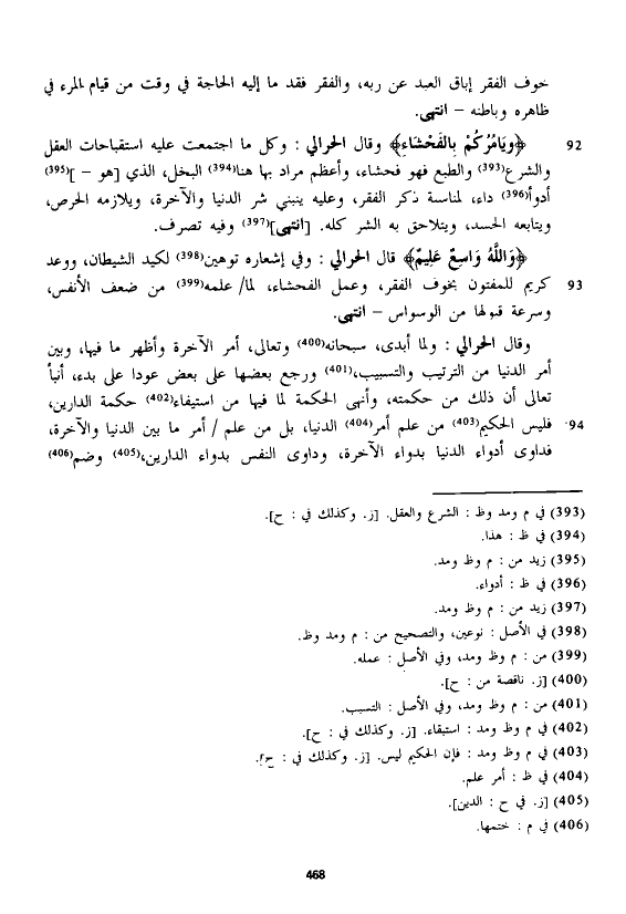 وقال الْحَرَالِّي: وكل ما اجتمعت عليه استقباحات العقل والشرع والطبع فهو فحشاء، وأعظم مراد بها هنا البخل، الذي [هو -] أدوأ داء، لمناسبة ذكر الفقر، وعليه ينبني شر الدنيا والآخرة، ويلازمه الحرص، ويتابعه الحسد، ويتلاحق به الشر كله. [انتهى] وفيه تصرف.