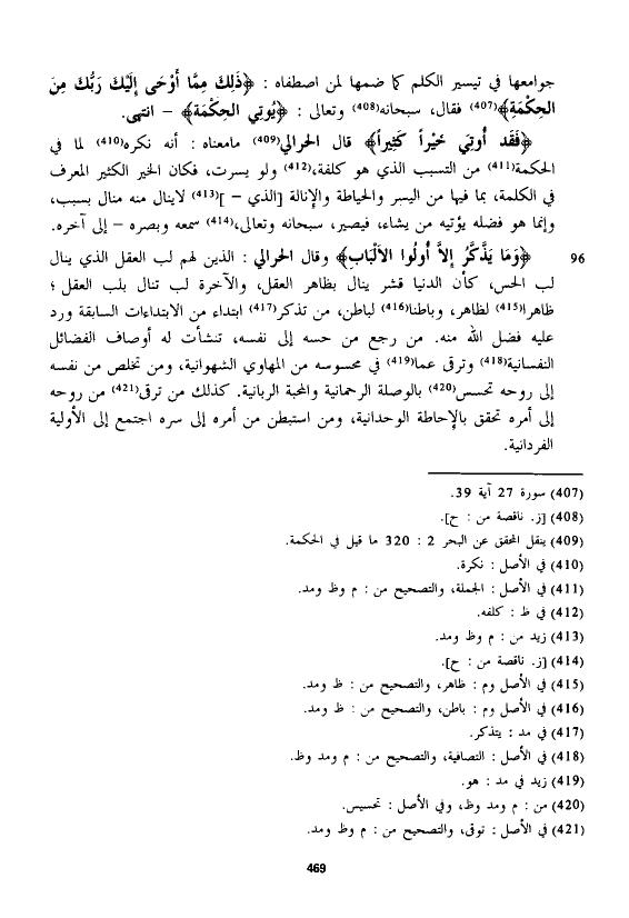 جوامعها في تيسير الكلم كما ضمها لمن اصطفاه: {ذَلِكَ مِمَّا أَوْحَى إِلَيْكَ رَبُّكَ مِنَ الْحِكْمَةِ} فقال، سبحانه وتعالى: {يُؤْتِي الْحِكْمَةَ} - انتهى.