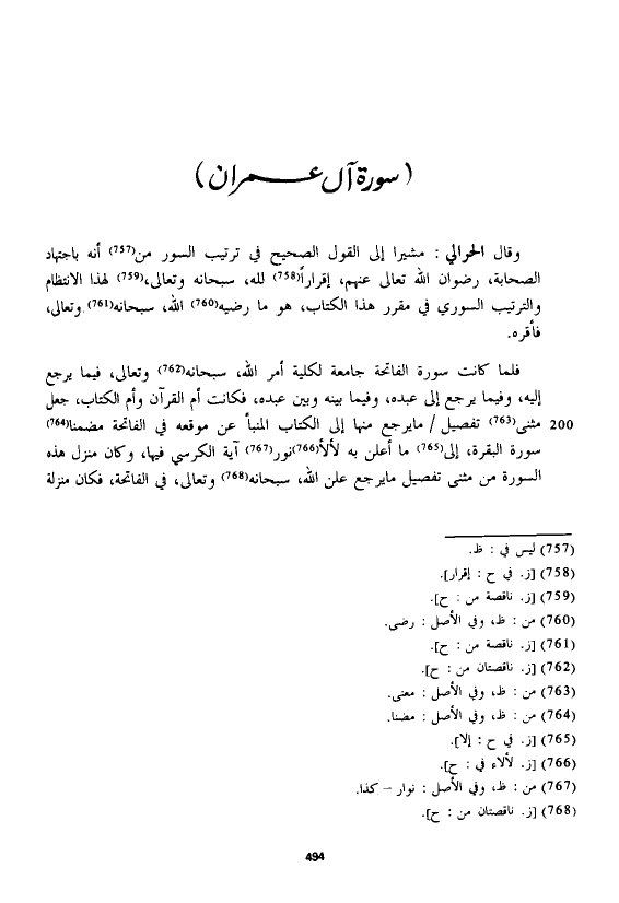 وقال الْحَرَالِّي: مشيراً إلى القول الصحيح في ترتيب السور من أنه باجتهاد الصحابة، رضوان الله تعالى عنهم، إقرارا لله، سبحانه وتعالى، لهذا الانتظام والترتيب السوري في مقرر هذا الكتاب، هو ما رضيه الله، سبحانه وتعالى، فأقره.