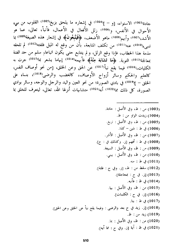 جادة الاستواء، [و -] في إشعاره ما يلحق بزيغ القلوب من سيء الأحوال في الأنفس، وزلل الأفعال في الأعمال، فأنبأ، تعالى، عما هو الأشد، وأبهم ماهو الأضعف، {فَيَتَّبِعُونَ} في إشعار هذه الصيغة بما تنبئ عنه من تكلف المتابعة، بأن من وقع له الميل فلفته لم تلحقه مذمة هذا الخطاب، فإذا وقع الزلل، ولم يتتابع حتى يكون اتباعا، سلم من حد الفتنة بمعالجة التوبة. {مَا تَشَابَهَ مِنْهُ} فأفهمه إبهاما يشعر بما جرت به الكليات، فيما يقع نبأ عن الحق وعن الخلق، [من نحو أوصاف النفس، كالعليم والحكيم وسائر أزواج الأوصاف، كالغضب والرضى، بناء على الخلق -] في بادي الصورة؛ من نحو العين واليد والرجل والوجه، وسائر بوادي الصورة، كل ذلك مما أنه متشابهات أنزلها الله، تعالى، ليتعرف للخلق بما