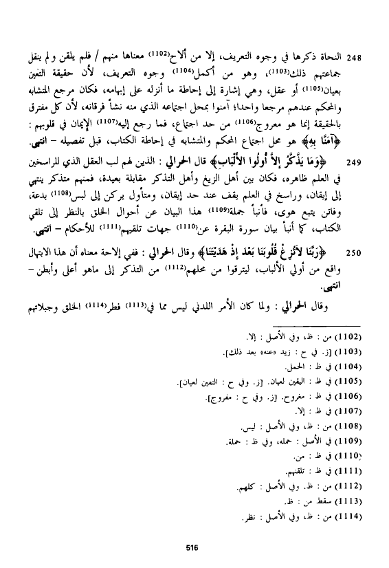 النحاة ذكرها في وجوه التعريف، إلا من ألاح معناها منهم فلم يلقن ولم ينقل جماعتهم ذلك، وهو من أكمل وجوه التعريف، لأن حقيقة التعين بعيان أو عقل، وهي إشارة إلى إحاطة ما أنزله على إبهامه، فكان مرجع المتشابه والمحكم عندهم معروجا واحداً؛ آمنوا بمحل اجتماعه الذي منه نشأ فرقانه، لأن كل مفترق بالحقيقة إنما هو معروج من حد اجتماع، فما رجع إليه الإيمان في قلوبهم: {آمَنَّا بِهِ} هو محل اجتماع المحكم والمتشابه في إحاطة الكتاب، قبل تفصيله - انتهى.
