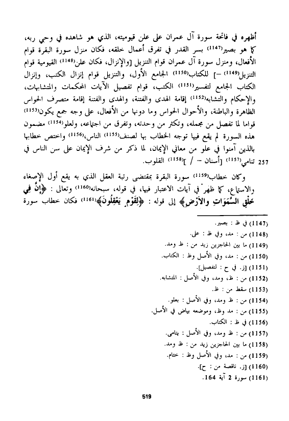 وكان خطاب سورة البقرة بمقتضى رتبة العقل الذي به يقع أول الإصغاء والاستماع، كما ظهر في آيات الاعتبار فيها، في قوله، سبحانه وتعالى: {إِنَّ فِي خَلْقِ السَّمَاوَاتِ وَالْأَرْضِ} إلى قوله: {لِقَوْمٍ يَعْقِلُونَ} فكان خطاب سورة