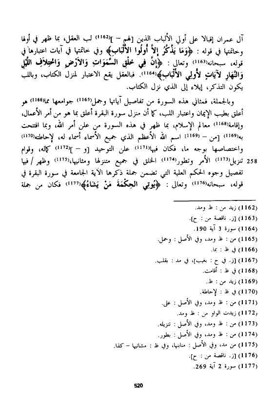 وبالجملة، فمثاني هذه السورة من تفاصيل آياتها وجمل جوامعها مما هو أعلق بطيب الإيمان واعتبار اللب، كما أن منزل سورة البقرة أعلق بما هو من أمر الأعمال، وإقامة معالم الإسلام، بما ظهر في هذه السورة من علن أمر الله، وبما افتتحت به [من -] اسم الله الأعظم الذي جميع الأسماء أسماء له، لإحاطته واختصاصها بوجه ما، فكان فيها علن التوحيد [و -] كماله، وقوام تنزيل الأمر وتطور الخلق في جميع متنزلها ومثانيها، وظهر فيها تفصيل وجوه الحكم العلية التي تضمن جملة ذكرها الآية الجامعة في سورة البقرة في قوله، سبحانه وتعالى: {يُؤْتِي الْحِكْمَةَ مَنْ يَشَاءُ} فكان من جملة