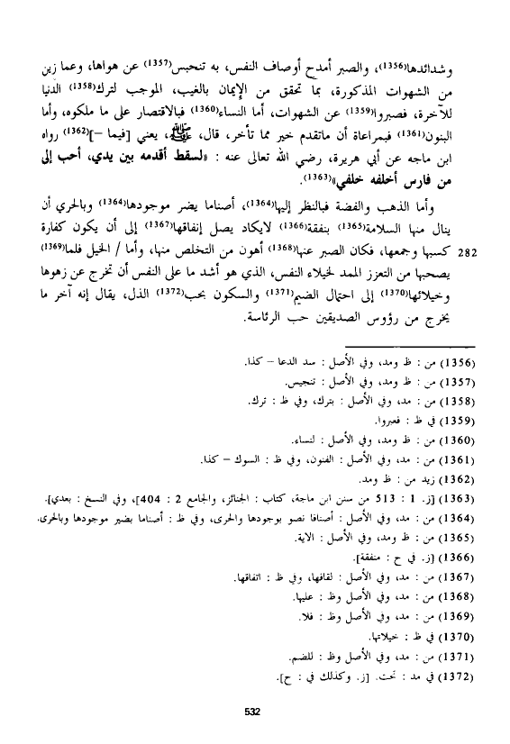 وشدائدها، والصبر أمدح أوصاف النفس، به تنحبس عن هواها، وعما زين من الشهوات المذكورة، بما تحقق من الإيمان بالغيب، الموجب لترك الدنيا للآخرة، فصبروا عن الشهوات، أما النساء فبالاقتصار على ما ملكوه، وأما البنون فبمراعاة أن ما تقدم خير مما تأخر، قال، - صلى الله عليه وسلم -، يعني [فيما -] رواه ابن ماجه عن أبي هريرة، رضي الله تعالى عنه: "لسقط أقدمه بين يدي، أحب إلى من فارس أخلفه خلفي".