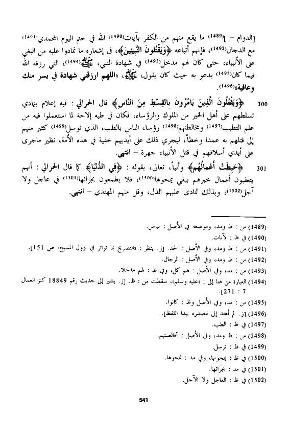 [الدوام -] ما يقع منهم من الكفر بآيات الله في ختم اليوم المحمدي مع الدجال، فإنهم أتباعه {وَيَقْتُلُونَ النَّبِيِّينَ}، في إشعاره ما تمادوا عليه من البغي على الأنبياء، حتى كان لهم مدخل في شهادة النبي، - صلى الله عليه وسلم -، التي رزقه الله فيما كان يدعو به حيث كان يقول، - صلى الله عليه وسلم -، "اللهم ارزقني شهادة في يسر منك وعافية".