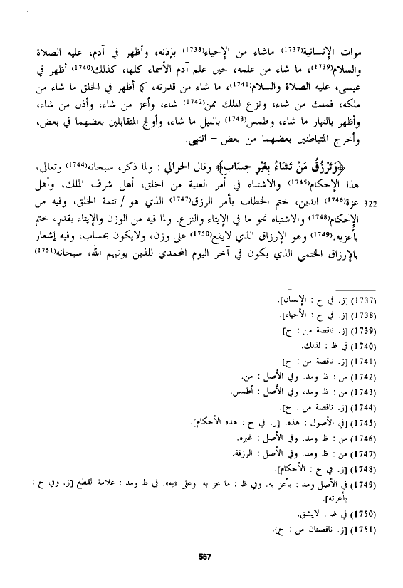 وقال الْحَرَالِّي: ولما ذكر، سبحانه وتعالى، هذا الإحكام والاشتباه في أمر العلية من الخلق، أهل شرف الملك، وأهل عزة الدين، ختم الخطاب بأمر الرزق الذي هو تتمة الخلق، وفيه من الإحكام والاشتباه نحو ما في الإيتاء والنزع، ولما فيه من الوزن والإيتاء بقدر، ختم بأعزيه. وهو الإرزاق الذي لا يقع على وزن، ولا يكون بحساب، وفيه إشعار بالإرزاق الختمي الذي يكون في آخر اليوم المحمدي للذين يوتيهم الله، سبحانه