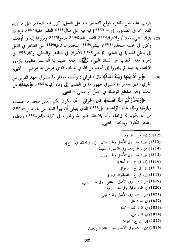 قال الْحَرَالِّي: أن تكون لكم أنفس فتجد ما عملت، ويلزمها وطأة هذه المؤاخذة، بل الذي ينبغي أن يبرأ العبد من نفسه تربئته من أن يكون له إرادة، وأن يلاحظ علم الله وقدرته في كلية ظاهره وباطنه، وظاهر الكون وباطنه - انتهى.