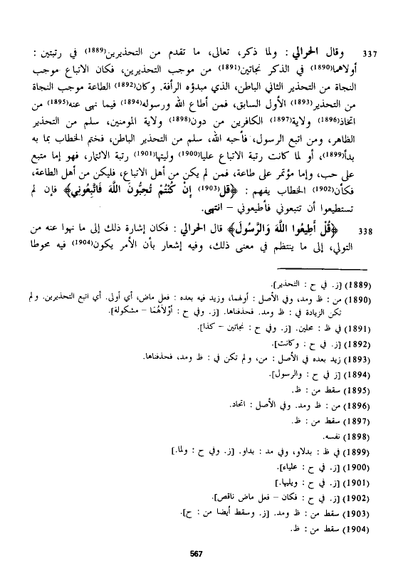 وقال الْحَرَالِّي: ولما ذكر، تعالى، ما تقدم من التحذيرين في رتبتين: أولاهما في الذكر نجاتين من موجب التحذيرين، فكان الاتباع موجب النجاة من التحذير الثاني الباطن، الذي مبدؤه الرأفة. وكان الطاعة موجب النجاة من التحذير الأول السابق، فمن أطاع الله ورسوله فيما نهى عنه من اتخاذ ولاية الكافرين من دون ولاية المؤمنين، سلم من التحذير الظاهر، ومن اتبع الرسول، فأحبه الله، سلم من التحذير الباطن، فختم الخطاب بما به بدأ، أو لما كانت رتبة الاتباع عليا وليتها رتبة الائتمار، فهو إما متبع على حب، وإما مؤتمر على طاعة، فمن لم يكن من أهل الاتباع، فليكن من أهل الطاعة، فكأن الخطاب يفهم: {قُلْ إِنْ كُنْتُمْ تُحِبُّونَ اللَّهَ فَاتَّبِعُونِي} فإن لم تستطيعوا أن تتبعوني فأطيعوني - انتهى.