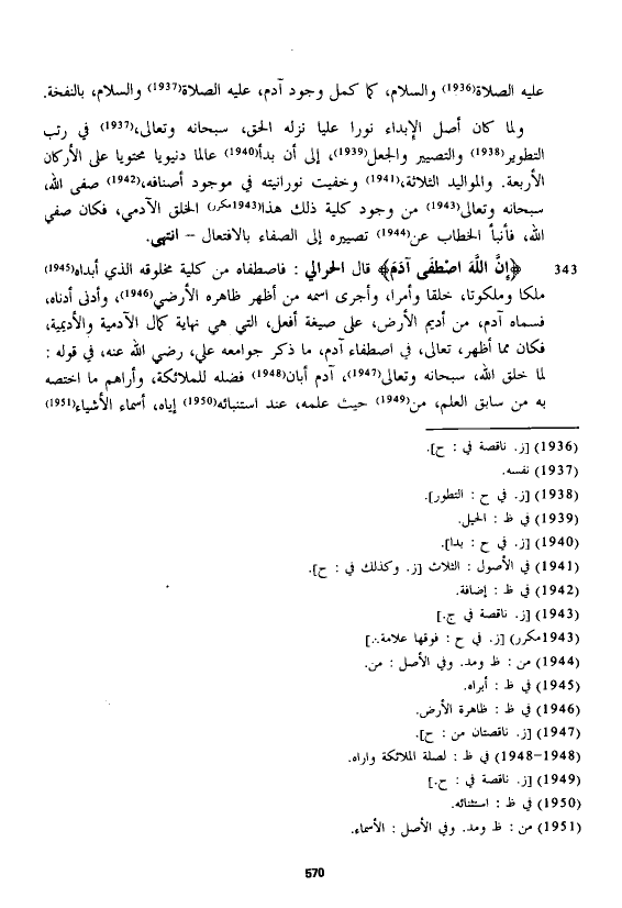 ولما كان أصل الإبداء نوراً عليا نزله الحق، سبحانه وتعالى، في رتب التطوير والتصيير والجعل، إلى أن بدأ عالما دنيويا محتويا على الأركان الأربعة. والمواليد الثلاثة، وخفيت نورانيته في موجود أصنافه، صفى الله، سبحانه وتعالى من وجود كلية ذلك هذا الخلق الآدمي، فكان صفي الله، فأنبأ الخطاب عن تصييره إلى الصفاء بالافتعال - انتهى.
