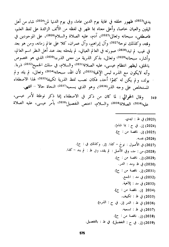 يدي ظهور خلقه في غاية يوم الدين عاما، وفي يوم الدنيا لمن شاء من أهل اليقين والعيان خاصا، وأعلى معناه بما ظهر في لفظه من الألف الزائدة على لفظ العلم، فاصطفى، سبحانه وتعالى، آدم، عليه الصلاة والسلام، على الموجودين في وقته، وكذلك نوحا وآل إبراهيم، وآل عمران، كلا على عالم زمانه، ومن هو بعد في غيب لم تبد صورته في العالم العياني، لم يلحقه بعد عند أهل النظر اسم العالم، وأشار، سبحانه وتعالى، بذكر الذرية من معنى الذرء، الذي هو مخصوص بالخلق، ليظهر انتظام عيسى، عليه الصلاة والسلام، في سلك الجميع ذرءا. وأنه لا يكون مع الذرء لبس الإلهه، لأن الله، سبحانه وتعالى، لم يلد ولم يولد، ولم يكن له كفواً أحد، فكان نصب لفظ الذرية تكييفا لهذا الاصطفاء المستخلص على وجه الذر، وهو الذي يسميه النحاة حالا - انتهى.