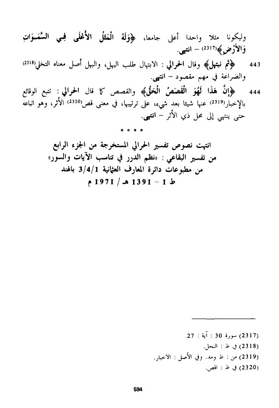 من تفسر البقاعي: "نظم الدرر في تناسب الآيات والسور"
