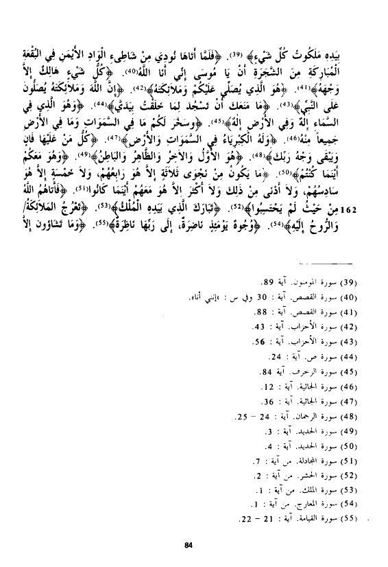 بِيَدِهِ مَلَكُوتُ كُلِّ شَيْءٍ}. {فَلَمَّا أَتَاهَا نُودِيَ مِنْ شَاطِئِ الْوَادِ الْأَيْمَنِ فِي الْبُقْعَةِ الْمُبَارَكَةِ مِنَ الشَّجَرَةِ أَنْ يَا مُوسَى إِنِّي أَنَا اللَّهُ}. {كُلُّ شَيْءٍ هَالِكٌ إِلَّا وَجْهَهُ}. {هُوَ الَّذِي يُصَلِّي عَلَيْكُمْ وَمَلَائِكَتُهُ}. {إِنَّ اللَّهَ وَمَلَائِكَتَهُ يُصَلُّونَ عَلَى النَّبِيِّ}. {مَا مَنَعَكَ أَنْ تَسْجُدَ لِمَا خَلَقْتُ بِيَدَيَّ}. {وَهُوَ الَّذِي فِي السَّمَاءِ إِلَهٌ وَفِي الْأَرْضِ إِلَهٌ}. {وَسَخَّرَ لَكُمْ مَا فِي السَّمَاوَاتِ وَمَا فِي الْأَرْضِ جَمِيعًا مِنْهُ}. {وَلَهُ الْكِبْرِيَاءُ فِي السَّمَاوَاتِ وَالْأَرْضِ}. {كُلُّ مَنْ عَلَيْهَا فَانٍ (26) وَيَبْقَى وَجْهُ رَبِّكَ}. {هُوَ الْأَوَّلُ وَالْآخِرُ وَالظَّاهِرُ وَالْبَاطِنُ}. {وَهُوَ مَعَكُمْ أَيْنَ مَا كُنْتُمْ}. {مَا يَكُونُ مِنْ نَجْوَى ثَلَاثَةٍ إِلَّا هُوَ رَابِعُهُمْ وَلَا خَمْسَةٍ إِلَّا هُوَ سَادِسُهُمْ وَلَا أَدْنَى مِنْ ذَلِكَ وَلَا أَكْثَرَ إِلَّا هُوَ مَعَهُمْ أَيْنَ مَا كَانُوا}. {فَأَتَاهُمُ اللَّهُ مِنْ حَيْثُ لَمْ يَحْتَسِبُوا}. {تَبَارَكَ الَّذِي بِيَدِهِ الْمُلْكُ}. {تَعْرُجُ الْمَلَائِكَةُ وَالرُّوحُ إِلَيْهِ}. {وُجُوهٌ يَوْمَئِذٍ نَاضِرَةٌ (22) إِلَى رَبِّهَا نَاظِرَةٌ}. {وَمَا تَشَاءُونَ إِلَّا