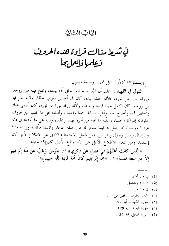 القول في التمهيد: اعلم أن الله، سبحانه، خلق آدم بيده، ونفخ فيه من روحه، ورزقه نورا من نوره، فلأنه خلقه بيده، كان في أحسن تقويم، خلقا، ولأنه نفخ فيه من روحه، كان أكمل حياة قبضا وبسطا، ولأنه رزقه نورا من نوره، كان أصفى عقلا وأخلص لبا، وأفصح نطقا وأعرب بيانا، جمعا وفصلا، وأطلعه على ما كتب من حروف مخلوقاته إدراكا وحسا، وعقله ما أقام من أمره فهما وعلما، ونبهه على ما أودعه في ذاته عرفانا ووجدا، ثم جعل له فيما سخر له من خلقه متاعا، وأنسا، فأناسه وردده ما بين إقبال وإدبار وقبول وإعراض، فمن شغل بالاستمتاع الأدنى عن الاطلاع الأعلى كان [سفيها، ومن شغله الاطلاع الأعلى عن الاستمتاع الأدنى كان] حنيفا.