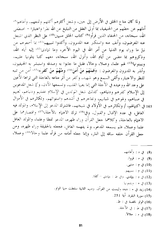 ولما كان متاع الخلق في الأرض إلى حين، وشغل أكثرهم أكلهم وتمنعهم، وأنهاهم أملهم عن حظهم من الحنيفية، بما أوتي العقل من التبليغ عن الله نظرا واعتبارا - اصطفى الله، سبحانه، من الحنفاء الذين قرأوا كتاب الخلق منبهين على النظر الذي اشتغل عنه المعرضون، وأنف منه واستكبر عنه المدبرون، وأكدوا تنبيههم بما اسمعوهم من نبأ ما وراء يوم الدنيا من أمر الله في اليوم الآخر، وما تتمادى إليه أيام الله، وذكروهم بما مضى من أيام الله، وأنزل الله، سبحانه، معهم كتبا يتلونها عليهم، ويبينونها لهم علما، وعملا، وحالا، فقبل ما جاءوا به وصدقه واستبشر به الحنفيون، وأنذر به المدبرون والمعرضون: {فَمِنْهُمْ مَنْ آمَنَ وَمِنْهُمْ مَنْ كَفَرَ} آمن من تنبه للنظر والاعتبار، وألقى السمع وهو شهيد، وكفر من آثر متاعه بالعاجلة التي تراها الأعين على وعد الله ووعيده في الآجله التي إنما يعيها القلب، وتسمعها الأذن، وكما شغل المدعوين إلى الإسلام كفرهم ودنياهم، كذلك شغل المولدين في الإسلام غفلتهم ودنياهم، لعبهم في صباهم، ولهوهم في شبابهم، وتفاخرهم في أشدهم واستوائهم، وتكاثرهم في الأموال في اكتهالهم، وتكاثرهم في الأولاد في شيخهم، فاشترك المدعو إلى الإسلام، والمولد فيه الغافل، في عدم الإقبال والقبول، وفي ترك الاهتمام بالآجلة، واقتصارهما على الاهتمام بالعاجلة، وكلاهما جعل القرآن وراء ظهره، المدعو لفظا وعلما، والمولد الغافل علما وعملا، فلم يسمعه المدعو، ولم يفهمه الغافل، فجعله بالحقيقة وراء ظهره، ومن جعل القرآن خلفه ساقه إلى النار، وإنما جعله أمامه من قرأه علما وحالا وعملا،