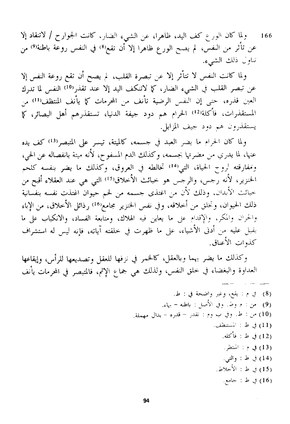 ولما كانت النفس لا تتأثر إلا عن تبصرة القلب، لم يصح أن تقع روعة النفس إلا عن تبصر القلب في الشيء الضار، كما لا تنكف اليد إلا عند تقذر النفس لما تدرك العين قذره، حتى إن النفس الرضية تأنف من المحرمات كما يأنف المنتظف من المستقذرات، فأكلة الحرام هم دود جيفة الدنيا، تستقذرهم أهل البصائر، كما يستقذرون هم دود جيف المزابل.