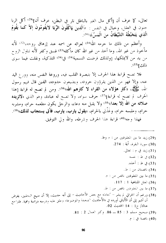 فلا تصح قراءة هذا الحرف إلا بتبصرة القلب فيه، وروعة النفس منه، وورع اليد عنه، وإلا فهو من الذين يقرؤون حروفه، ويضيعون حدوده، الذين قال فيهم رسول الله، - صلى الله عليه وسلم -، "كثر هؤلاء من القراء لا كثرهم الله". ومن لم يصح له قراءة [هذا الحرف لم تصح له قراءة] حرف سواه، ولا تصح له عبادة، وهو الذي "لا تزيده صلاته من الله إلا بعدا" ولا يقبل منه دعاء، والرجل يكون مطعمه حرام، ومشربه حرام، وملبسه حرام، وغذي بالحرام، "يقول يارب، يارب، فأنى يستجاب لذلك".