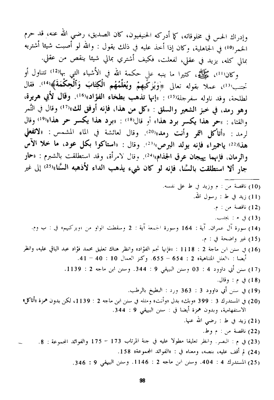وإدراك الحس في مخلوقاته، كما أدركه الحنيفيون، كان الصديق، رضي الله عنه، قد حرم الخمر في الجاهلية، وكان إذا أخذ عليه في ذلك يقول: والله لو أصبت شيئا أشتريه بمالي كله، يزيد في عقلي، لفعلت، فكيف أشتري بمالي شيئا ينقص من عقلي.