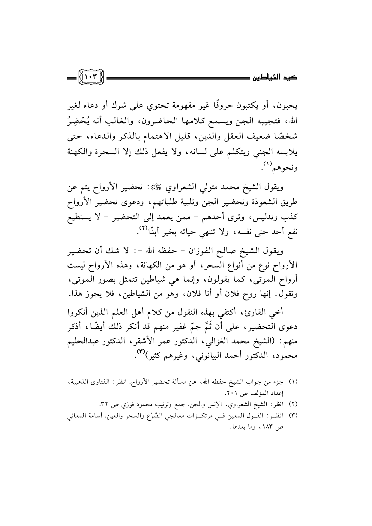(¬3) انظر: القول المعين في مرتكزات معالجي الصَّرْع والسحر والعين. أسامة المعاني ص 183، وما بعدها.