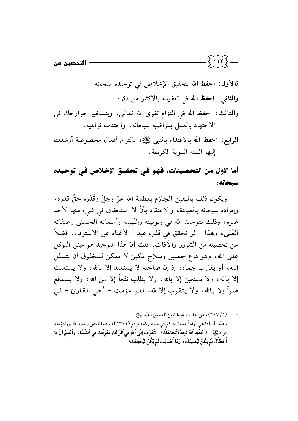 أما الأول من التحصينات، فهو في تحقيق الإخلاص في توحيده سبحانه: