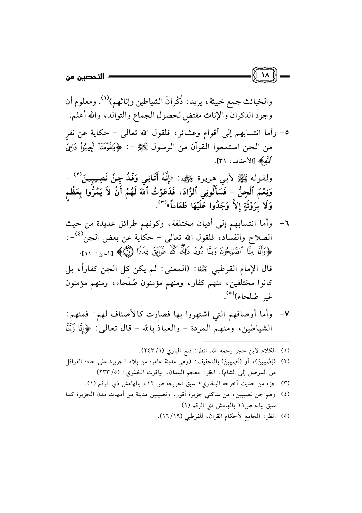 (¬4) وهم جن نصيبين، من ساكني جزيرة أقور، ونصيبين مدينة من أمهات مدن الجزيرة كما سبق بيانه ص11 بالهامش ذي الرقم (1) .