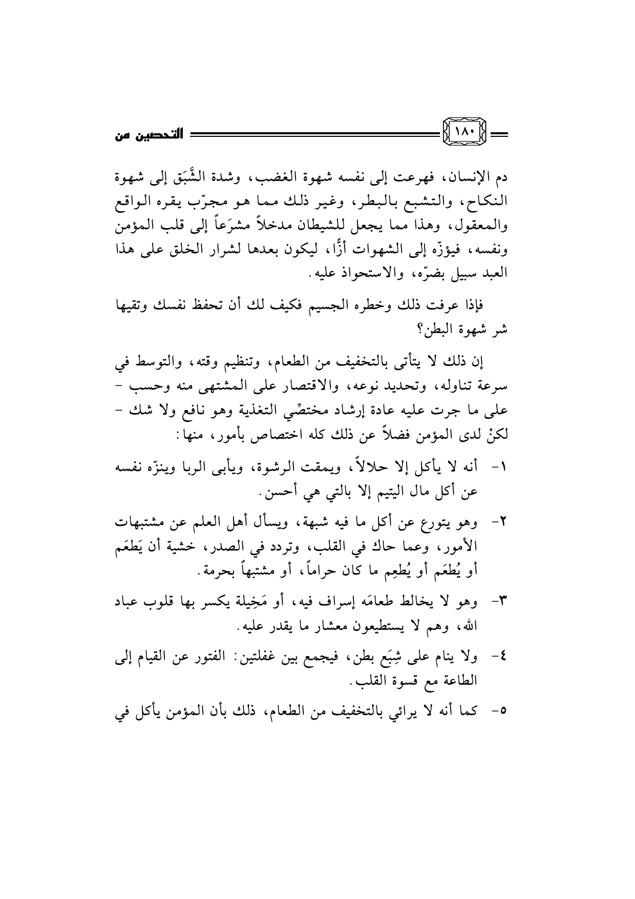 2- ... وهو يتورع عن أكل ما فيه شبهة، ويسأل أهل العلم عن مشتبهات الأمور، وعما حاك في القلب، وتردد في الصدر، خشية أن يَطعَم أو يُطعَم أو يُطعِم ما كان حراماً، أو مشتبهاً بحرمة.
