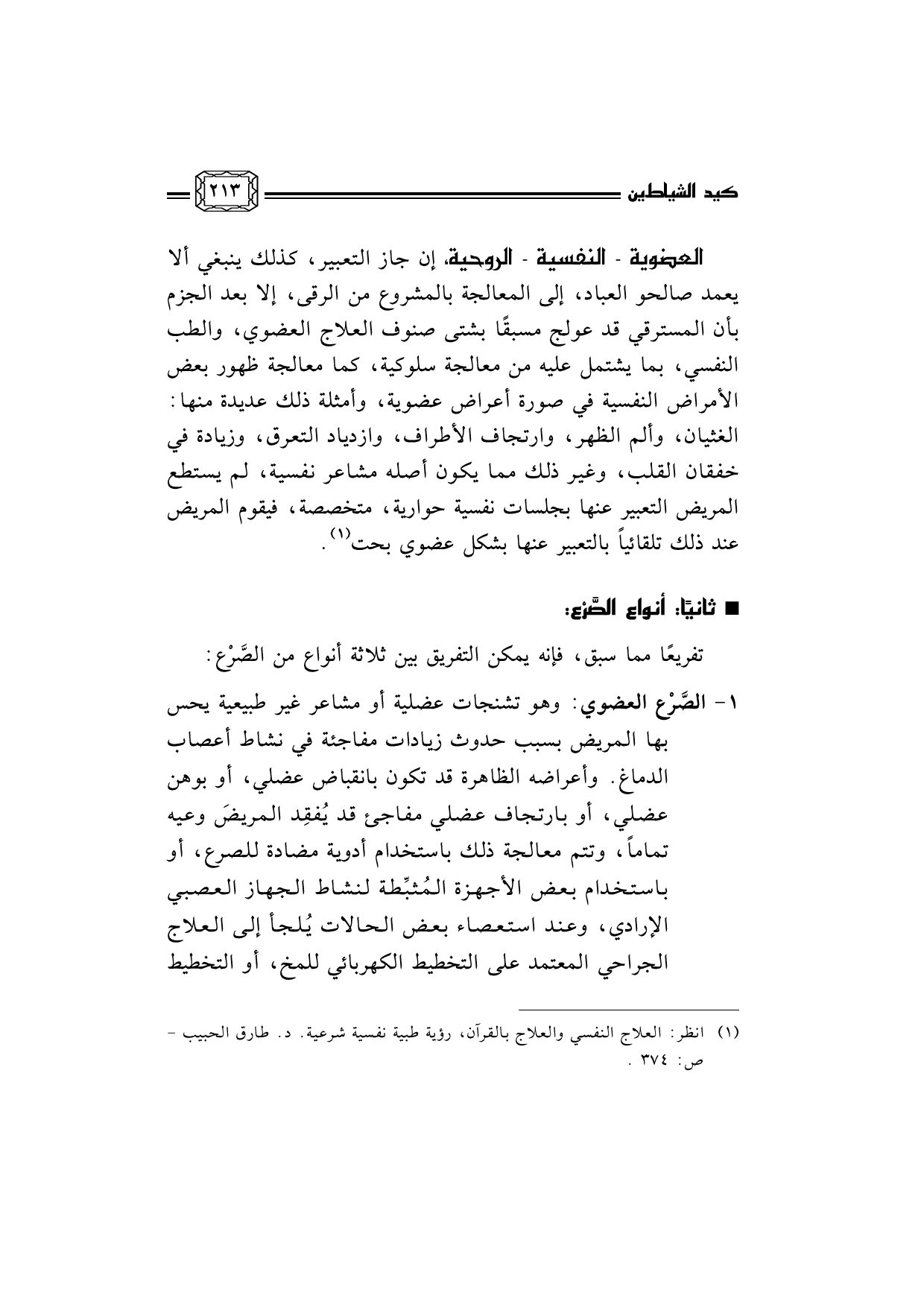 (¬1) انظر: العلاج النفسي والعلاج بالقرآن، رؤية طبية نفسية شرعية. د. طارق الحبيب - ص: 374.