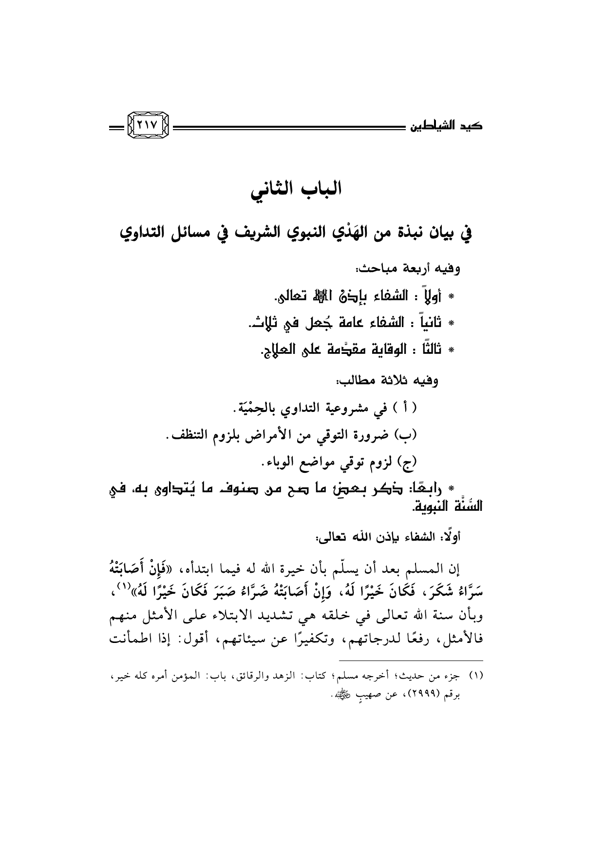 (¬1) جزء من حديث؛ أخرجه مسلم؛ كتاب: الزهد والرقائق، باب: المؤمن أمره كله خير، برقم (2999) ، عن صهيبٍ رضي الله عنه.